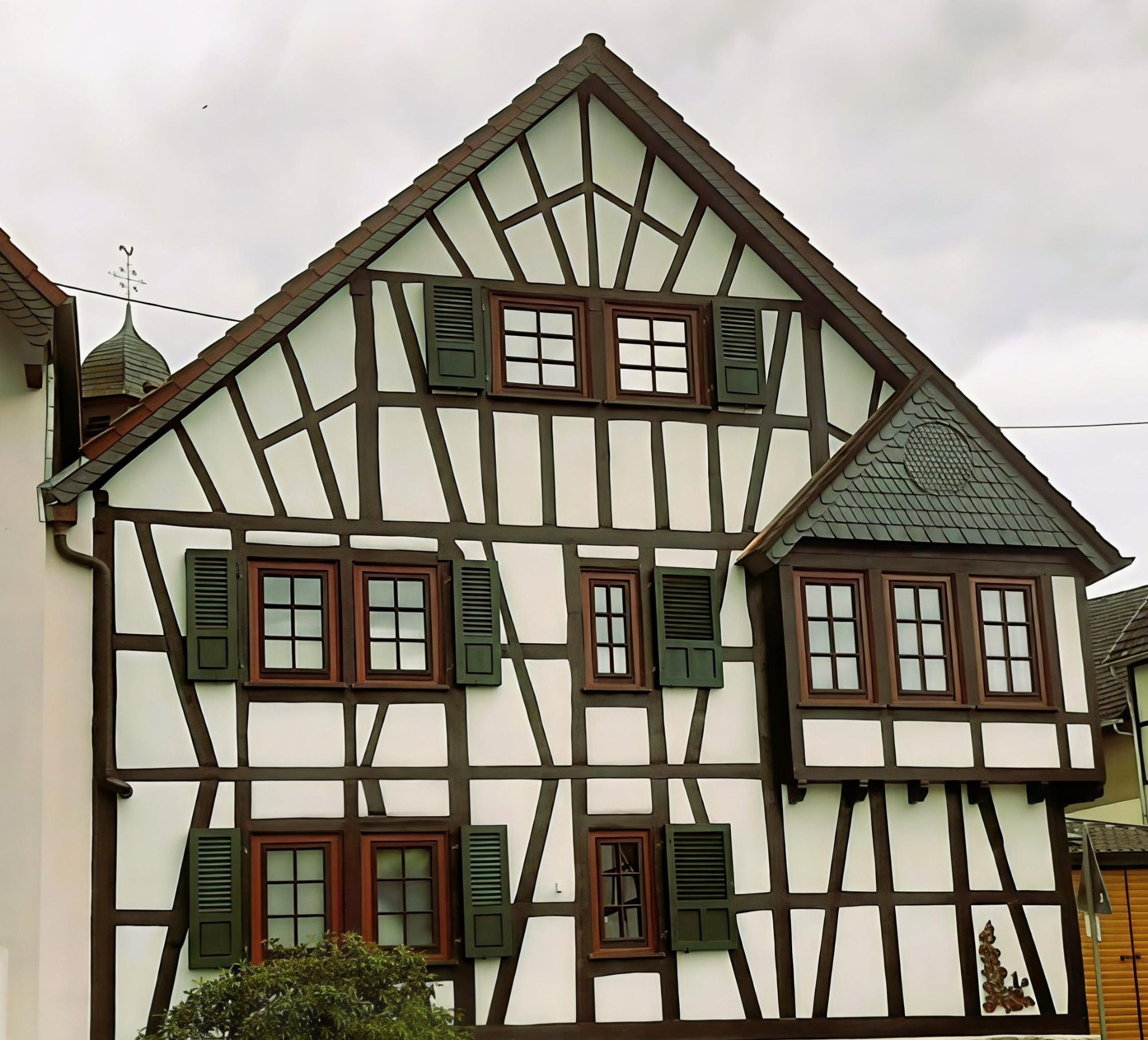 Für dieses schöne Fachwerkhaus in Weilrod wurden im Rahmen der Sanierung auch neue Fensterläden nach Maß gefertigt und montiert. Der Auftraggeber hat unsere neuen Fensterläden vor der Montage durch uns mit Leinölfarbe mehrfach gestrichen. Auch durch die Leinölfarbe ist bei einem Neuanstrich kein vorheriges Anschleifen der alten Farbe notwendig, da die Leinölfarbe keinen festen Film bildet, sondern sich mit dem Holz auf molekularer Ebene verbindet.