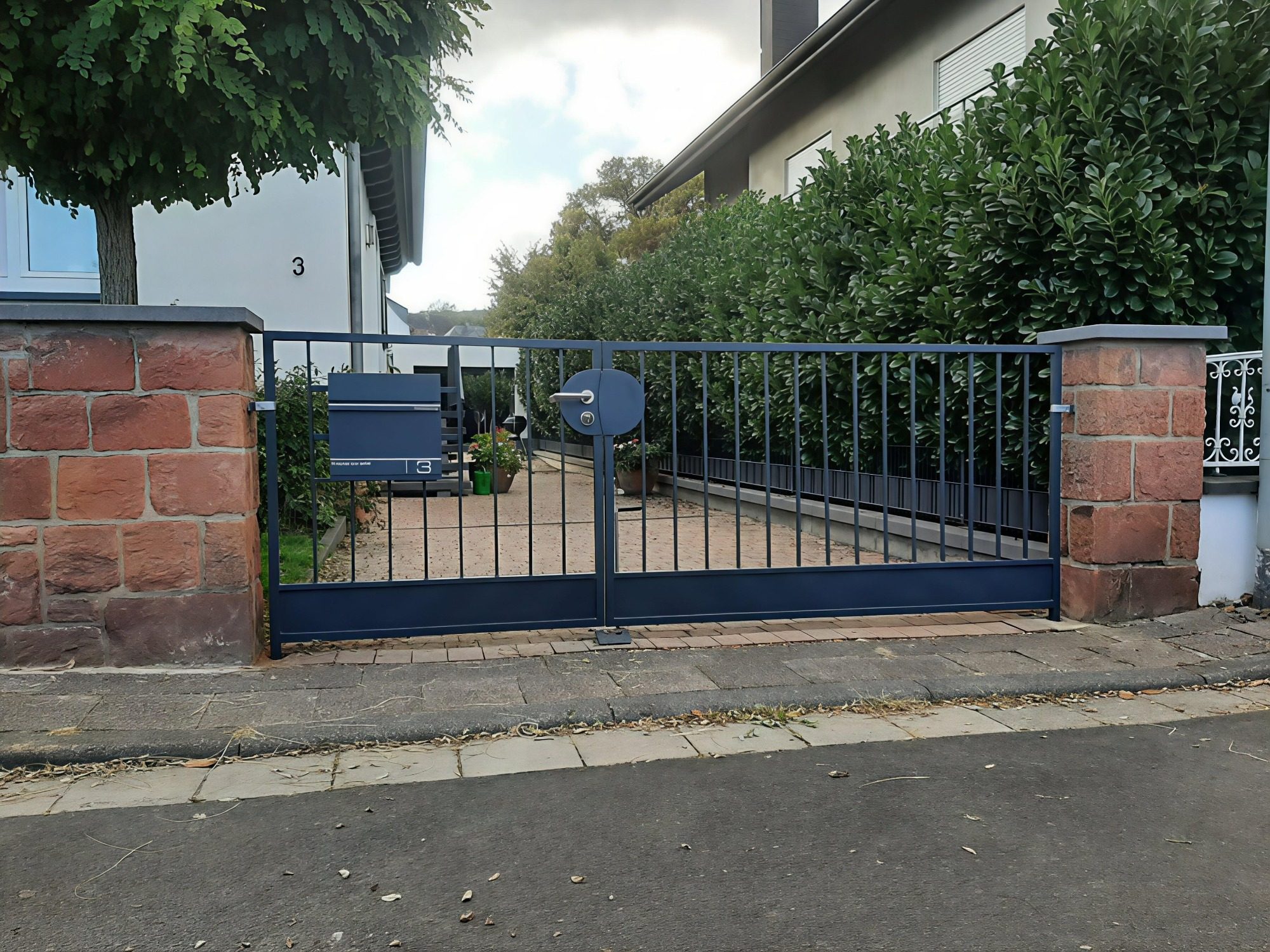 Bei diesem Hoftor mussten nur ein paar kleinere Schweißreparaturen durchgeführt und ein paar verbogene Stangen ersetzt werden, und es konnte mit einer neuen Pulverbeschichtung wieder an Ort und Stelle seinen Dienst tun. Für den neuen Briefkasten wurde zudem eine neue, passende Halterung angefertigt.