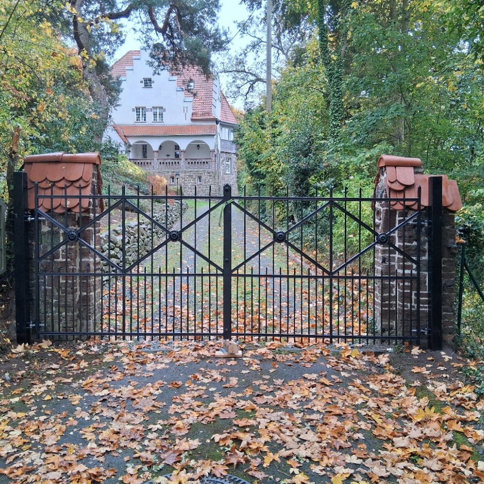 Dieses prächtige Tor haben wir für die neuen Bewohner dieses herrschaftlichen Hauses in Weilrod wieder nutzbar gemacht. Es wurde zuerst sandgestrahlt, repariert und verkürzt, um schließlich neu pulverbeschichtet wieder montiert zu werden.